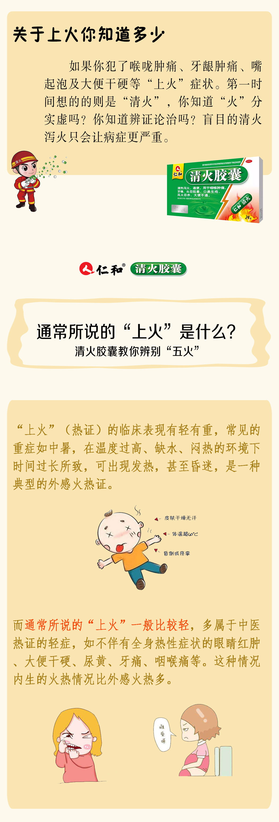 相傳在公元1900年8月,八國(guó)聯(lián)軍入侵北京,慈禧被迫逃離京城,一路提心吊膽,倉(cāng)皇失措,經(jīng)過(guò)連日奔波,終于在這天到達(dá)榆林堡(今屬河北省懷來(lái)縣),借住在老百姓劉老頭家中。 次日醒來(lái),感覺(jué)口干舌燥,拿隨身鏡子一照,竟然發(fā)現(xiàn)臉上長(zhǎng)了痘痘,這讓一直以來(lái)注重保養(yǎng)、極度自戀的老佛爺大為沮喪。要是在宮中,早就宣太醫(yī)來(lái)開(kāi)方調(diào)養(yǎng),然而現(xiàn)在是逃難時(shí)期,哪有太醫(yī)隨侍身側(cè)。 見(jiàn)此情景,劉老頭向慈禧推薦了一聞名鄉(xiāng)里的老中醫(yī)。老中醫(yī)醫(yī)術(shù)高明,觀察了太后的臉,接著詢問(wèn)了連日來(lái)的飲食,隨即開(kāi)了一劑方子,囑咐連服三天即可。太后將信將疑,吩咐隨身宮女按照老中醫(yī)開(kāi)的方子抓藥、煎藥,接連服用了三天,果然痘痘消失了,雖在盛夏時(shí)節(jié),卻感覺(jué)神清氣爽,在隨后的逃難途中,每逢上火,必用次方,屢試不爽。 一年后,慈禧回到宮中,一直惦記那個(gè)老中醫(yī),有心將他任命為太醫(yī),便派人去請(qǐng)他入宮。可惜榆林堡的劉老頭說(shuō),老中醫(yī)就象閑云野鶴,已經(jīng)游走四方了。 慈禧聽(tīng)后非常遺憾,便把老中醫(yī)當(dāng)年開(kāi)的藥方交給太醫(yī)院保留存檔。而這個(gè)方子也是現(xiàn)在的清火中成藥知名者——仁和清火膠囊的前身。